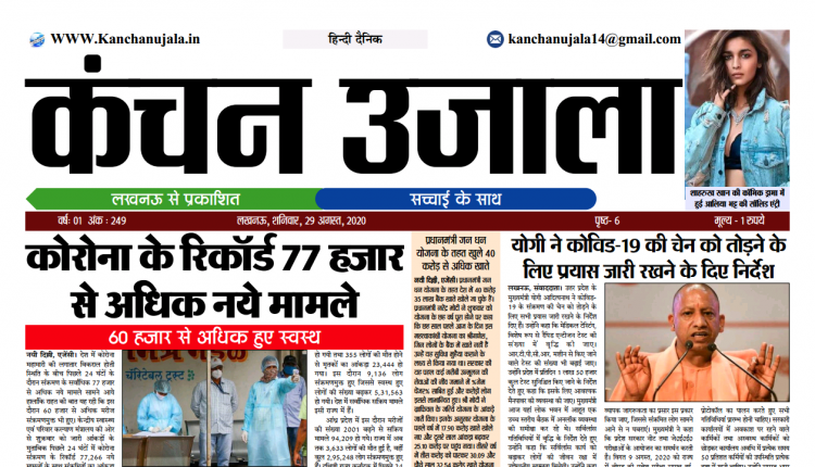 29 AUGUST KANCHAN UJALA ईपेपर By कंचन उजाला On Aug 29, 2020 0 27 Share 29 AUGUST KANCHAN UJALA कंचन उजाला ग्रुपराष्ट्रीय हिंदी दैनिक कंचन उजाला समाचार पत्र 0 27 Share