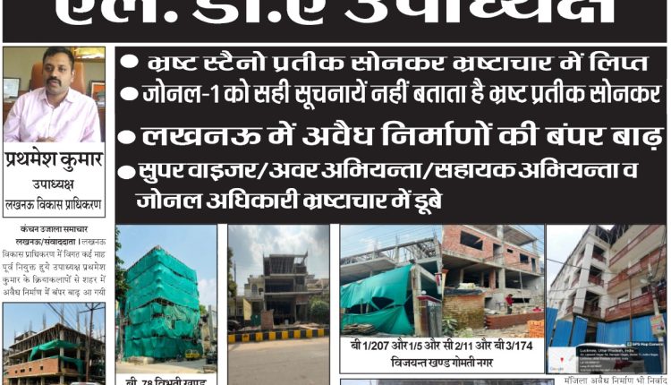लखनऊ विकास प्राधिकरण में विगत कई माह पूर्व नियुक्त हुये उपाध्यक्ष प्रथमेश कुमार के क्रियाकलापों से शहर में अवैध निर्माण में बंपर बाढ़ आ गयी है और उपाध्यक्ष लखनऊ विकास प्राधिकरण कान में तेल डाले बैठे है। उपाध्यक्ष प्रथमेश कुमार भ्रष्ट एल.डी.ए.कर्मियों को पूरा संरक्षण प्रदान कर रहे है और उसका परिणाम है कि एल.डी.ए.सुपरवाइजर से अवर अभियन्ता, सहायक अभियन्ता व जोनल अधिकारी सभी भ्रष्टाचारियों के अकण्ट में डूबे हुये है और एल.डी.ए. वी.सी.प्रथमेश कुमार भ्रष्ट कर्मियों पर कोई कार्यवाही नहीं कर रहे है। उन्होने नियुक्ति से लेकर आज तक किसी भी जोनल क्षेत्रों में कोई दौरा ब्यौरा नहीं किया होगा। जिसका परिणाम है कि लखनऊ शहर में अवैध निर्माण धड़ल्ले से जारी है। सूत्रों के अनुसार बताया जाता है कि जोन-1 के गोमती नगर क्षेत्र जो शहर का सबसे पाश इलाकों में आता है वहां अवैध निर्माणों में बम्पर बाढ़ आई हुई है और सभी भ्रष्ट कर्मियों की मिली भगत से निर्वाध रूप से अवैध निर्माण फलीभूत हो रहे है और भ्रष्ट कर्मियों द्वारा बदस्तूर अवैध निर्माणों से अवैध वसूली जारी है। सूत्रों के अनुसार बताया जाता है कि जोनल अधिकारी-1 देवांश त्रिवेदी एक ईमानदारी अधिकारी है, लेकिन इनका भ्रष्ट स्टेनों प्रतीक सोनकर सुपर वाइजर व अवर अभियन्ताओं से मिलकर बहुत सी शिकायतों को जोनल अधिकारी के समक्ष प्रस्तुत नहीं होने देता। भ्रष्ट स्टेनों प्रतीक सोनकर शिकायत कर्ता की शिकायतों को भ्रष्ट अभियन्ताओं को सूचित करता है, जिससे भ्रष्ट अभियन्ता एवं सुपरवाइजर शिकायत कर्ता पर अनावश्यक दबाव डालते है और सम्बन्धी पक्ष को भी बताने का काम करते है. जिससे रंजिशे बढ़ रहीं है। ऐसे भ्रष्ट स्टैनो प्रतीक सोनकर को तत्काल निलम्बित किया जाना चाहिए और उसके खिलाफ विभागीय जाँच की जानी चाहिए। सूत्रों के अनुसार बताया जाता है कि एल.डी.ए. उपाध्यक्ष प्रथमेश कुमार की नियुक्ति के बाद से लखनऊ के सभी जोनल क्षेत्रों में अवैध निर्माणों की बाढ़ तो आई है और मुख्यमंत्री के शिकायती पोर्टल आई.जी.आर.एस. पर की जाने वाली शिकायतों का भी निस्तारण भ्रष्ट एल.डी.ए.कर्मी/जोनल अधिकारी नहीं कर रहे है। बताया जाता है कि सभी जोनल क्षेत्रों में यदि विधिवत् मुआयना किया जाये तो अधिकांश क्षेत्रों में आवासीय नक्शे के विपरीत कर्मिशियल निर्माण तथा तय स्वीकृत मानचित्रों के विपरीत कई मंजिला अवैध निर्माण भी निर्वाद रूप से जारी है। इसके अतिरिक्त शहर के जिन क्षेत्रों में नक्शा स्वीकृत नहीं हो सकता है, वहां भी अवैध वसूली करके लाखो-लाखों की अवैध वसूली करके अवैध रो-हाउस व अवैध निर्माण अभियन्ताओं व जोनल अधिकारियों की मदद से जारी है। ईमानदारी का चोला पहने एल.डी.ए.उपाध्यक्ष प्रथमेश कुमार भ्