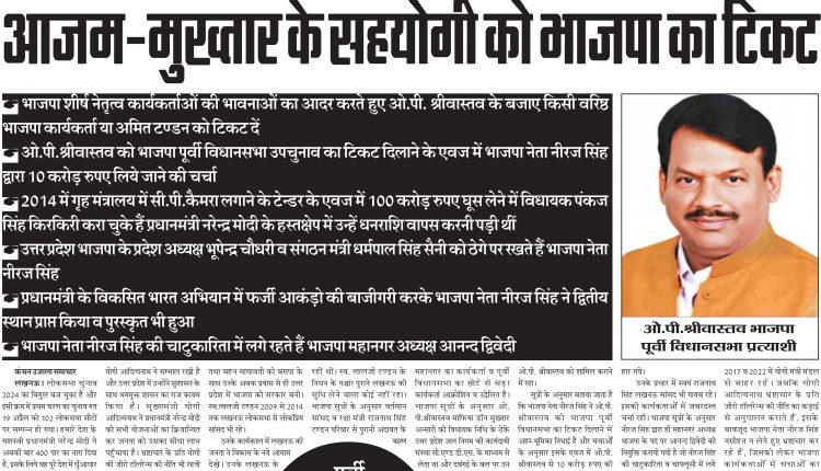 आजम- माफिया मुख्तार के सहयोगी को भाजपा का टिकट