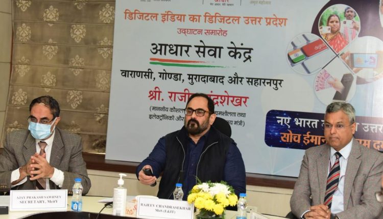 कंचन उजाला उत्तर प्रदेश। कौशल विकास और उद्यमशीलता तथा इलेक्ट्रॉनिकी और सूचना प्रौद्योगिकी राज्य मंत्री राजीव चंद्रशेखर ने गोंडा, वाराणसी, सहारनपुर और मुरादाबाद में आज आधार सेवा केंद्रों का उद्घाटन किया। इस अवसर पर चंद्रशेखर ने सभी लोगों को बधाई दी और कहा कि यह सार्वजनिक सेवा पूर्णतया निवासियों के लिए समर्पित है।
