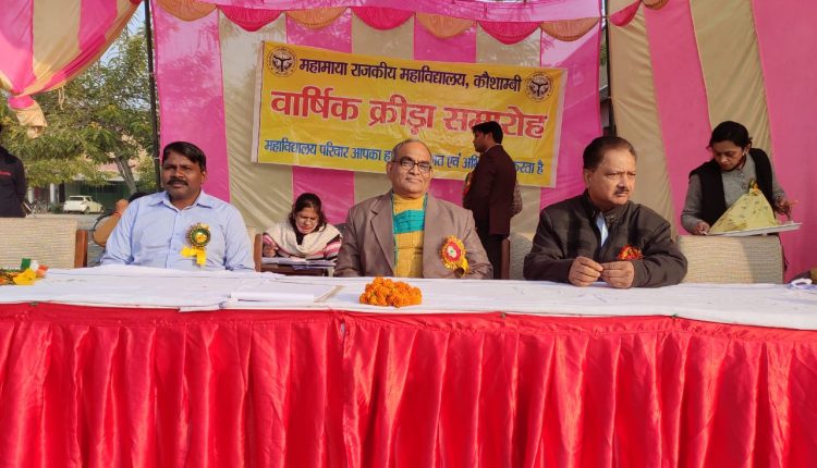 कंचन उजाला कौशाम्बी। महामाया राजकीय महाविद्यालय में आठवें दिन दो दिवसीय वार्षिक क्रीड़ा समारोह का उद्घाटन मुख्य अतिथि डॉ0 सत्येंद्र कुमार सिंह ,पूर्व प्राचार्य, राजकीय स्नातकोत्तर महाविद्यालय, हमीरपुर एवं पूर्व सहायक शिक्षा निदेशक, उच्च शिक्षा शिक्षा निदेशालय उत्तर प्रदेश प्रयागराज द्वारा किया गया। दो दिवसीय वार्षिक क्रीड़ा समारोह की अध्यक्षता डॉ0 विनय कुमार सिंह प्राचार्य महामाया राजकीय महाविद्यालय द्वारा की गई इस दौरान मुख्य अतिथि का स्वागत डॉ0 विनय कुमार सिंह प्राचार्य महामाया राजकीय महाविद्यालय कौशांबी द्वारा बुके एवं स्मृति चिन्ह देकर किया गया। इसके उपरांत मुख्य अतिथि एवं अन्य अतिथियों का वैद्य लगाकर स्वागत किया गया साथ ही मुख्य अतिथि द्वारा ध्वजारोहण एवं मार्च पास्ट की सलामी ली गई। इस अवसर पर मुख्य अतिथि ने समारोह के उद्घाटन के दौरान कहा कि बिना परिश्रम के कुछ प्राप्त नहीं होता है इस प्रतियोगिता के युग में कड़ी मेहनत तथा परिश्रम से ही सफलता प्राप्त की जा सकती है। परिश्रम ही सफलता की कुंजी है उन्होंने ऐसे छात्र और छात्राओं को बधाई दी जो इस दो दिवसीय वार्षिक प्रतियोगिता में प्रतिभाग कर रहे हैं। इस अवसर पर प्राचार्य डॉ विनय कुमार सिंह ने कहा कि खेल की भावना से ही व्यक्ति में शारीरिक मानसिक कुशलता में वृद्धि होती है खेल व्यक्ति के जीवन को तनाव मुक्त एवं दीर्घायु बनाता है उपस्थित लोगों को संबोधित करते हुए महामाया राजकीय महाविद्यालय के प्राचार्य विनय कुमार सिंह ने कहा कि भारतीय खेलों का इतिहास प्राचीन काल से रहा है।इस अवसर पर महाविद्यालय के डॉ0 अरविंद कुमार डॉ0 अजय कुमार ,डॉ0 नीलम बाजपेई, डॉ0 भावना केसरवानी ,डॉ0 रीता दयाल, डॉ0 तरित अग्रवाल ,डॉ0 पवन कुमार,डॉ0 नीरज कुमार ,डॉ0 रमेश चंद्र, डॉ0 अमित शुक्ल ,डॉ0 संतोष कुमार अजय कुमार मानवेंद्र सिंह साहनी आदि उपस्थित रहे। क्रीडा प्रभारी द्वारा मुख्य अतिथि एवं कार्यक्रम की अध्यक्षता कर रहे प्राचार्य एवं अन्य सभी का आभार ज्ञापन किया गया।।